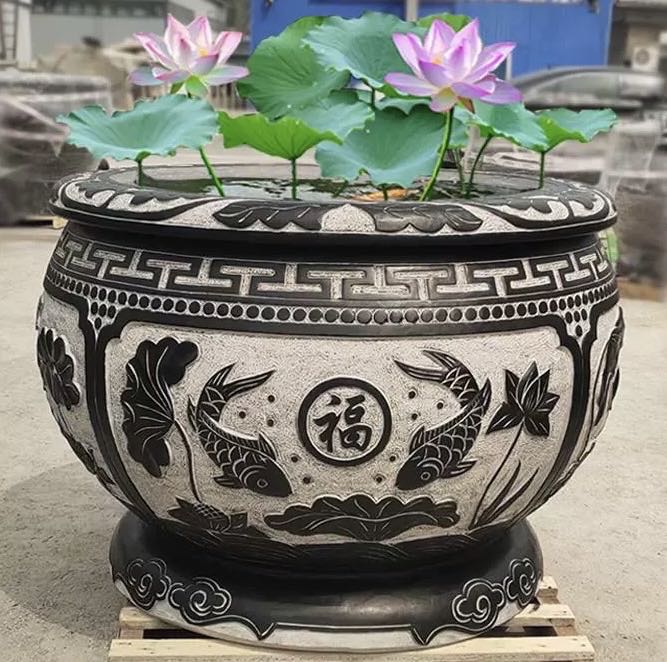 石缸适用于传统风格的设计的庭院,而在中国传统风水理论中认为“山管人丁水管财”,石雕鱼缸有石(山)有水,能促进公司或家人的财运。Stone basins are suitable for traditionally styled gardens. According to traditional Chinese Feng Shui theory, "mountains govern people,